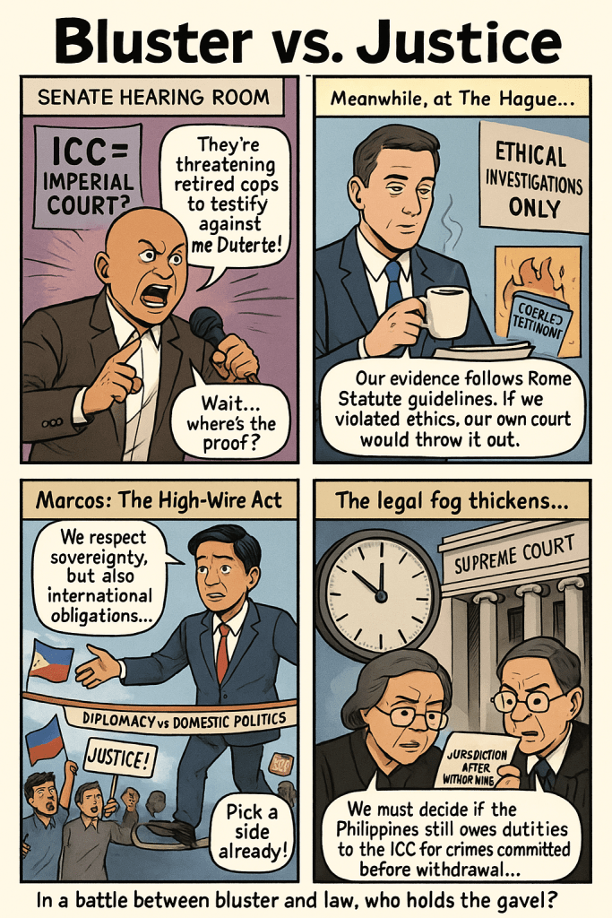 Dela Rosa’s coercion claims could rock the ICC if true, backed by Rome Statute, Article 55 and RA 6981. But with zero evidence, they’re a political smokescreen to shield him and Duterte. His “traitor” rhetoric risks violating witness protections, while his Senate inquiry smells like a witch hunt. Marcos’s ICC cooperation isn’t duplicity—it’s realpolitik, balancing global and domestic pressures. The Supreme Court and an MOU could clear the fog, but only if Marcos grows a spine. The only thing thinner than Dela Rosa’s evidence is Marcos’s commitment to reconciliation.