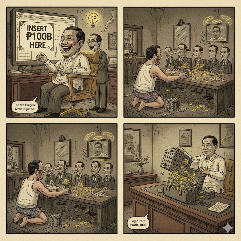 The gutter explanation: “They used bicam because it guarantees the 25% SOP (standard operating procedure)!” In Philippine pork-barrel folklore, that almost sounds clever. Bicam is dark, rushed, chaotic — perfect for slipping overpriced projects to pre-selected contractors who reliably kick back the “standard” cut. Now watch me destroy that theory with ice-cold logic. If you are the President and you truly want a quiet, reliable 25% rake-off, why route it through a room full of senators, congressmen, staffers, and egos — any one of whom can record, leak, or flip tomorrow? In the NEP you only need yourself and DBM. In the NEP there are no bicam minutes. In the NEP you don’t have to pray Zaldy Co stays loyal forever. So if this ₱100 billion was really about kickbacks, congratulations— you just staged the loudest, clumsiest, most self-incriminating robbery in Philippine history.