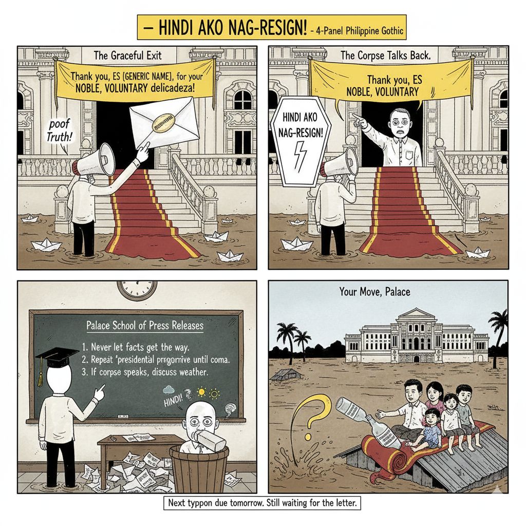 If the letter says nothing of the sort – congratulations, Malacañang, you just confessed to the nation that you will lie about anything, even the exit of your own alter-ego, to save the President’s skin.