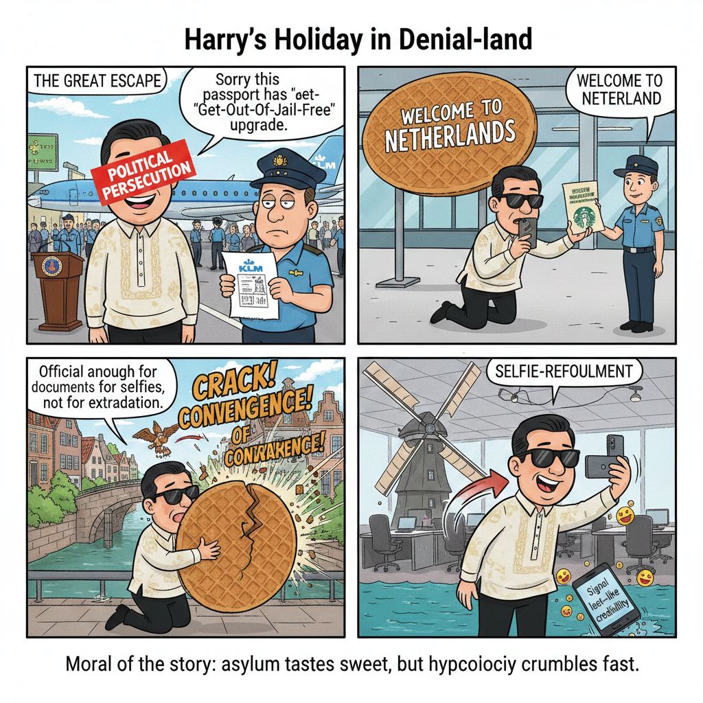 Look, Harry, we get it. You learned from the best — your former boss wrote the modern Filipino handbook on crying persecution while holding power. But there’s a difference: Mandela didn’t flee to Amsterdam. He faced Robben Island.