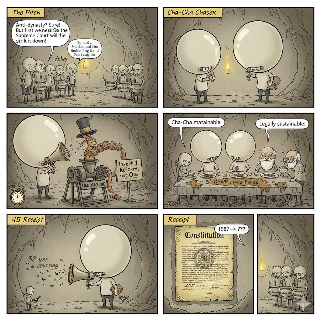 If Garbin wins: ChaCha becomes a politicized circus—years of debates, plebiscite costs, and inevitable failure amid public distrust. Meanwhile, dynasties thrive: 70–80% of seats held by clans, patronage unchecked, corruption entrenched. Equal access? A cruel joke.