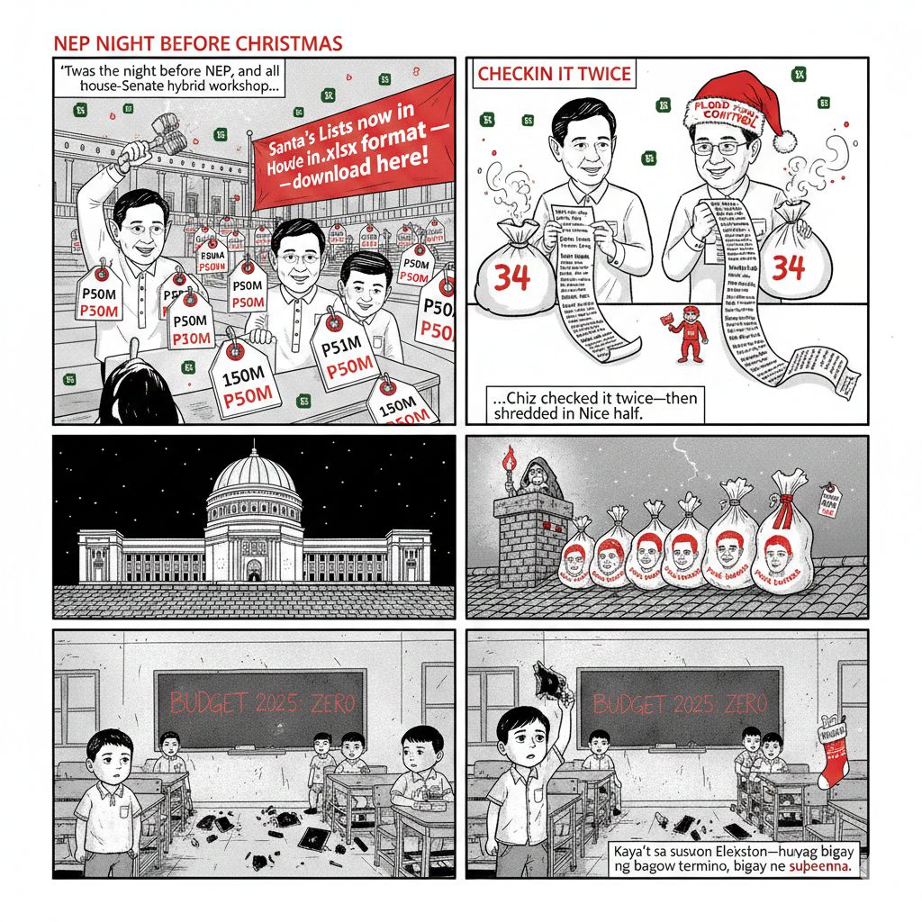 MGA ka-kweba, here at Kweba ni Barok, we don’t just report the news—we dissect the corpse of corruption while it’s still alive and feasting on the people’s money. And this Christmas of 2025, the biggest gift under the tree is the so-called DPWH Leaks (Politiko, 23 Dec. 2025): an Excel sheet from the hell of bureaucracy exposing how senators—all of them, no exceptions—submitted their “wish lists” to the National Expenditure Program (NEP) for the 2025 budget. Leading the pack? Former Senator and current Department of Education (DepEd) Secretary Sonny Angara with 105 projects. Followed by former Senate President Francis “Chiz” Escudero (34), Joel Villanueva (30), and Imee Marcos (28). The rest? All in—from Alan Peter Cayetano down to Risa Hontiveros with just one, but still in.