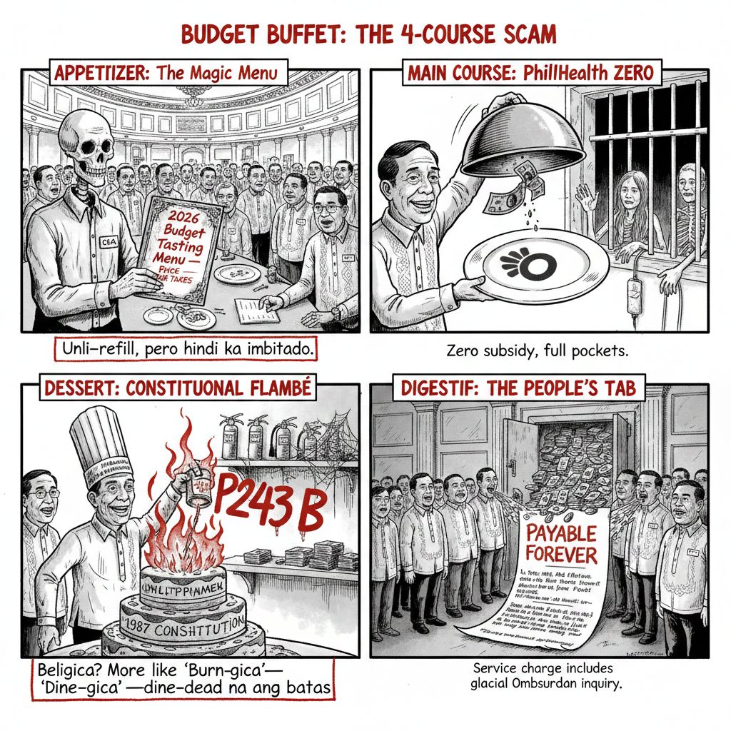 And the source of this windfall? Cuts to vital services—like the zero subsidy for the Philippine Health Insurance Corporation (PhilHealth) in 2025. Zero. While politicians feast, public health starves.