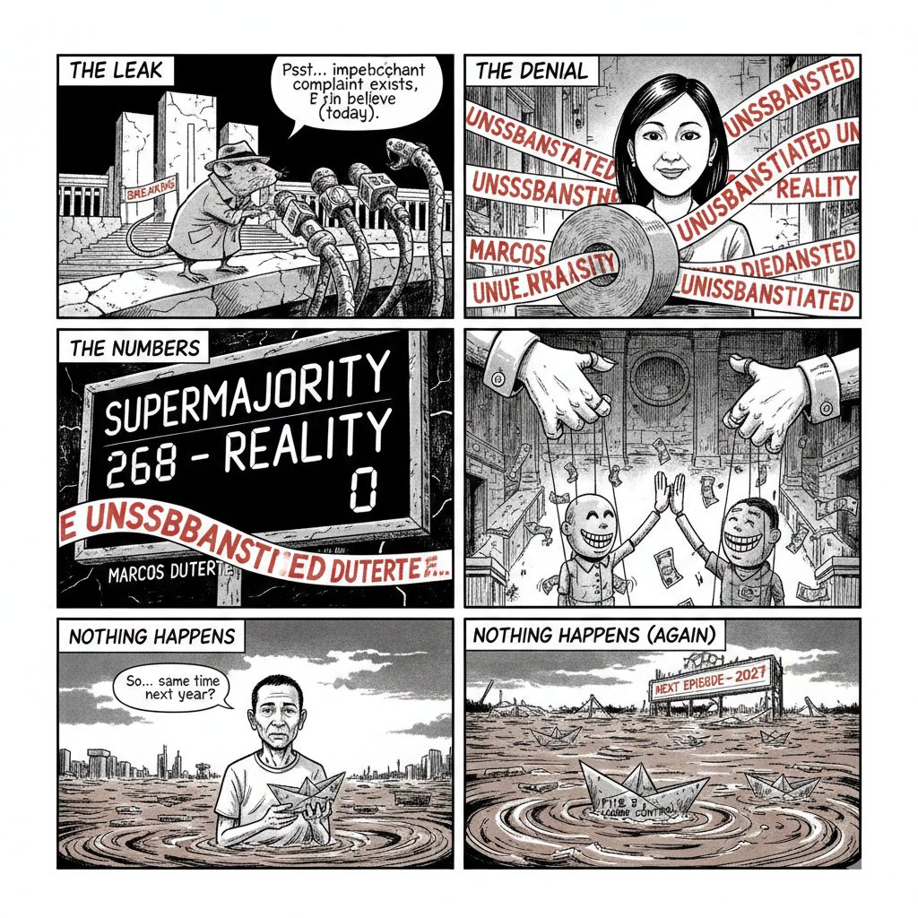 But theory is where it ends. Impeachment in the Philippines isn’t a legal remedy; it’s a political execution requiring political will that simply does not exist. Marcos commands a House supermajority. The Committee on Justice is gatekept by allies. The one-year bar rule—freshly reinforced in the 2025 Duterte impeachment ruling—adds another layer of procedural armor. Even if a verified complaint somehow materialized, it would die quietly in committee, killed not by lack of merit but by raw political math.