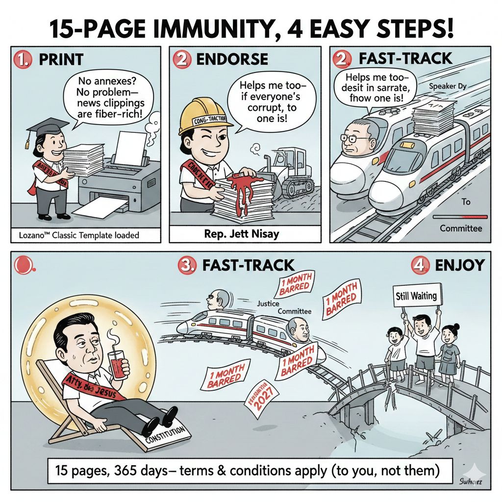 This is not new. This is the Oliver Lozano Special—repeated ad nauseam from 2005 to 2008 to protect GMA. Today, same script, new cast. Are we condemned to this cynical cycle every administration? Apparently yes, as long as we treat the Constitution as a political survival playbook rather than an instrument of justice.