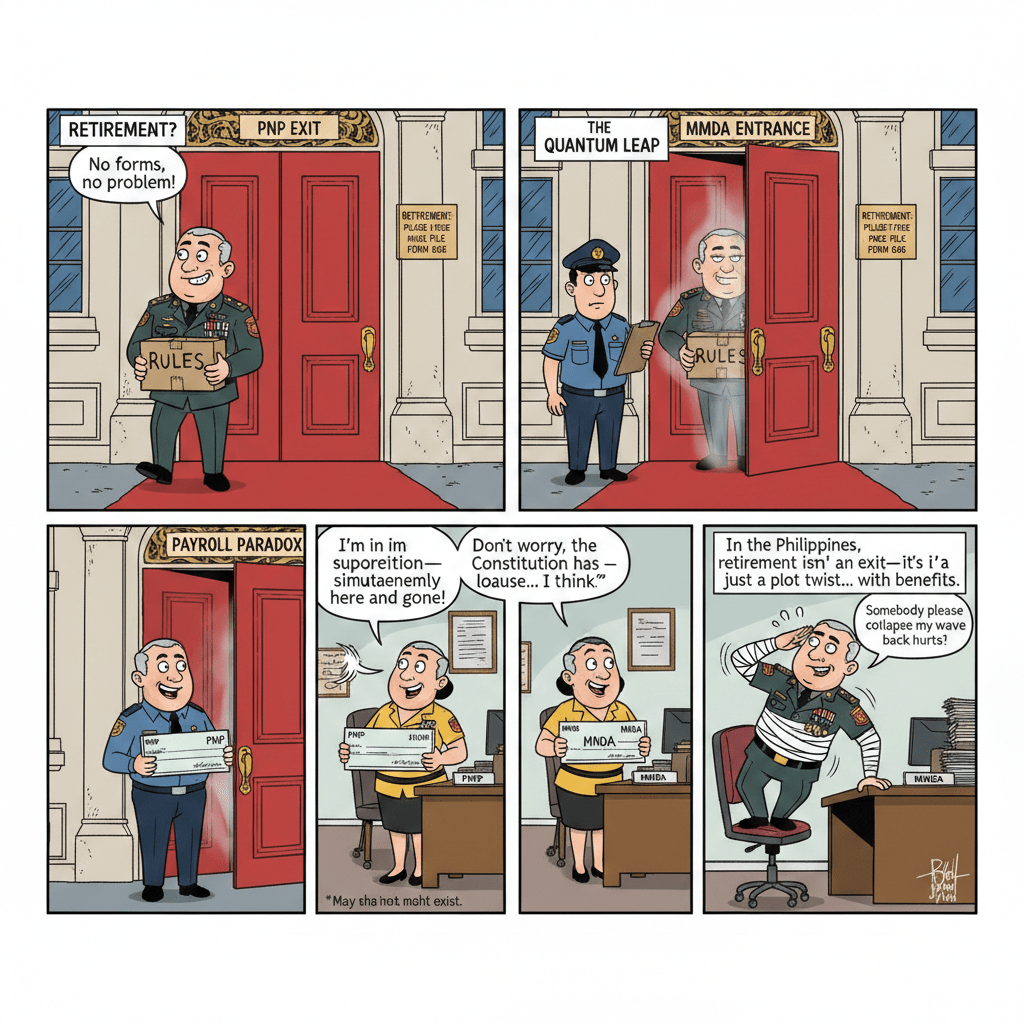 IN most civilized jurisdictions, retirement is a clean break: you hand over your badge, clear your desk, collect a plaque you didn’t ask for, and vanish into the sweet anonymity of private life. In the Philippines, retirement is more… conceptual. Optional. Interpretive. A state of mind.
