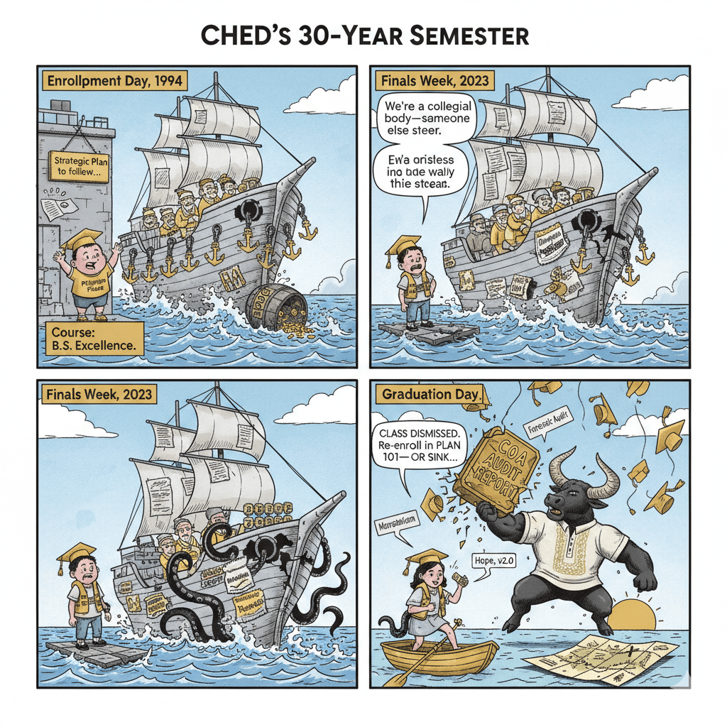 CHED was born in 1994 through Republic Act No. 7722 with soaring rhetoric: it would provide “strategic direction,” solve “fundamental problems,” and align higher education with national development. Beautiful words. Inspiring, even.