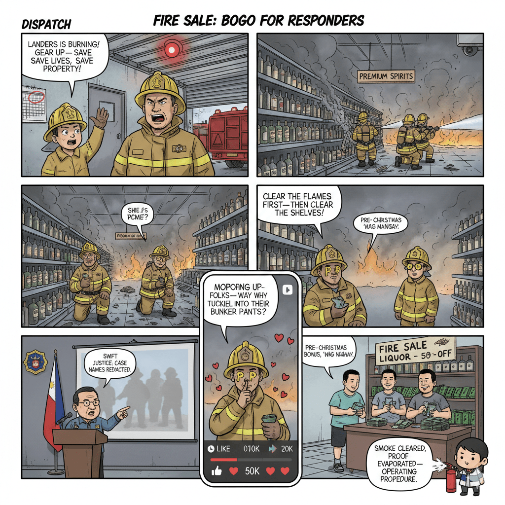 IN THE Philippines—a nation perpetually tested by disasters and undermined by opportunism—a massive fire ravaged the Landers Superstore in Quezon City’s Barangay Pasong Putik on January 28, 2026. Amid the ruins, volunteer firefighters, entrusted with public safety, were caught on video pocketing intact bottles of premium liquor. This was no act of salvage amid chaos; it was calculated theft, captured clearly in a viral video posted by netizen Johnny Gaw Yu on Facebook.
