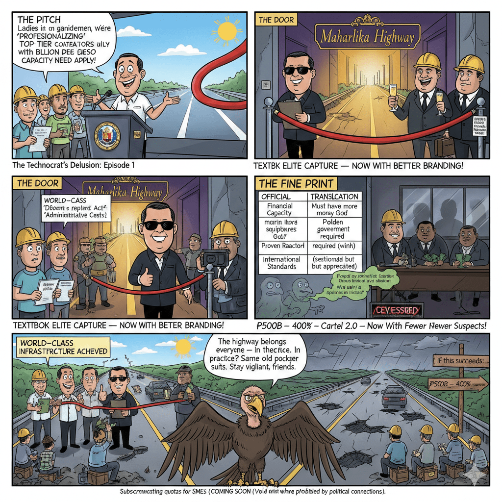 Worst of all: the Small and Medium Enterprises (SMEs) squeezed out are precisely the ones without political godfathers. These are the regional players employing thousands of local workers. When they disappear from the picture, infrastructure money flows even more heavily toward Manila-centric conglomerates. Regional development? Maybe next administration.