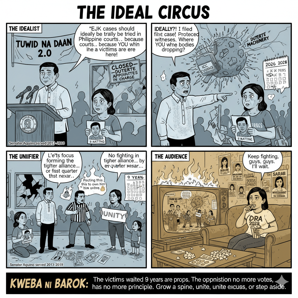 Aquino’s “ideal” is a cruel joke told to grieving mothers. Trillanes’s hardline stance is the only realistic path because the alternative is impunity with a Filipino accent.