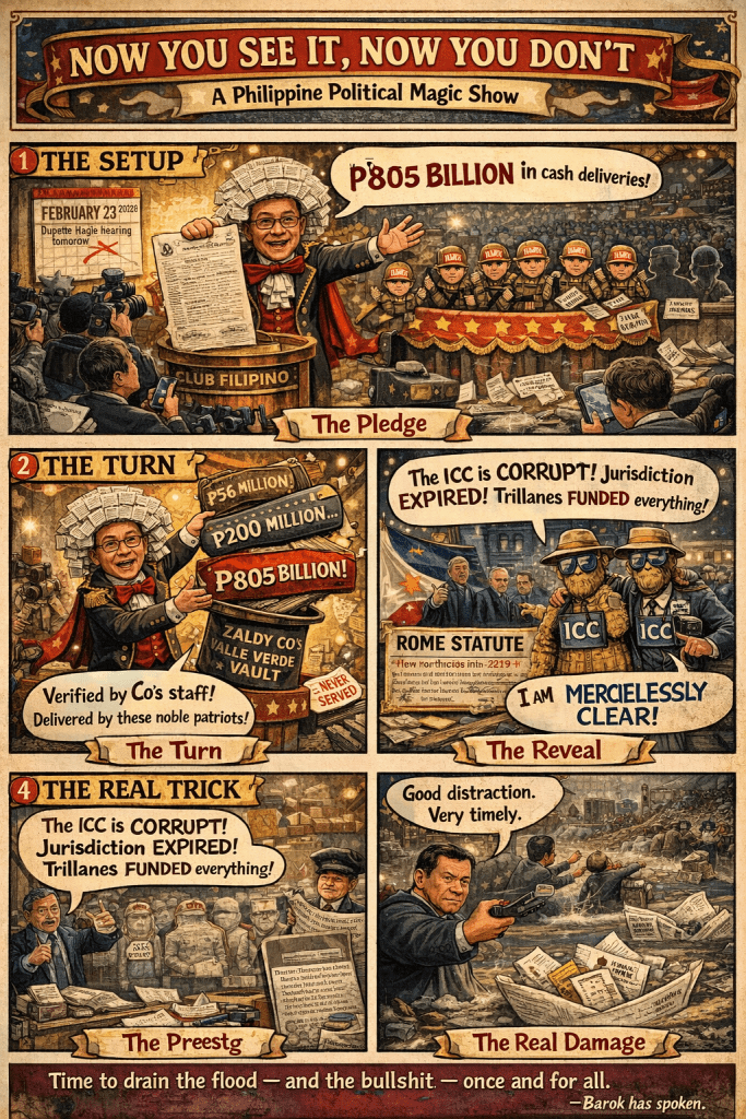 The flood rot is real. COA audits don’t lie. Guteza’s earlier testimony doesn’t vanish. But P805 billion in magic suitcases and bribed ICC probers? That is political theater of the lowest, most desperate order.