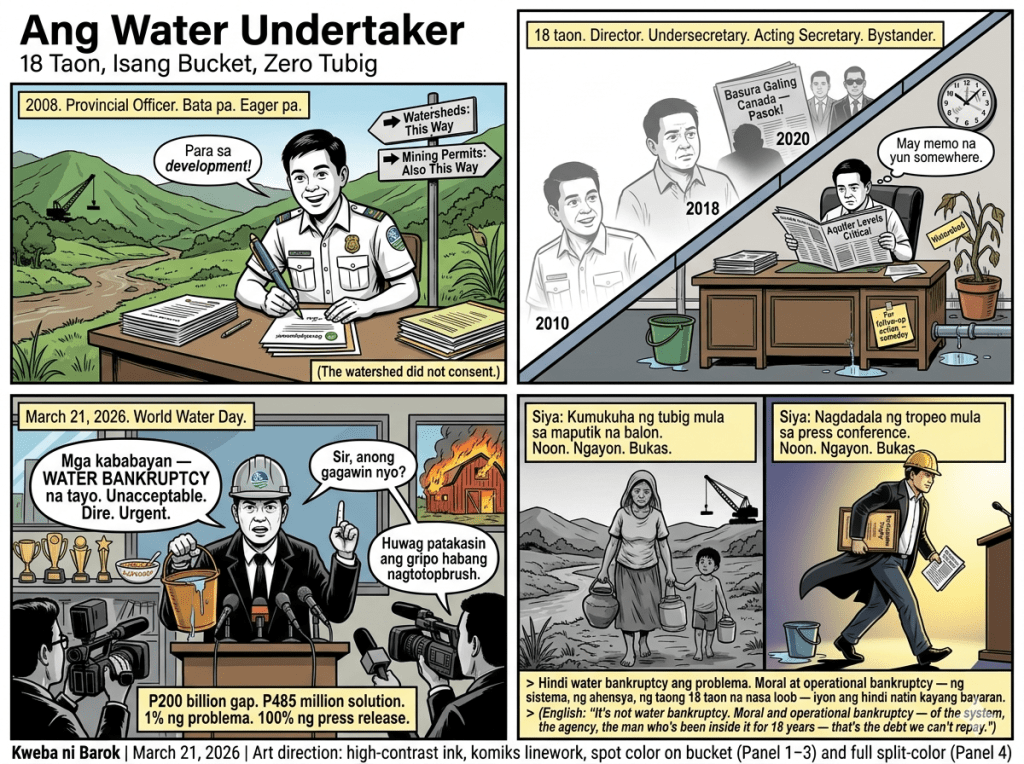 On World Water Day 2026, DENR Secretary Juan Miguel Cuna stood before the cameras and declared the Philippines is facing “water bankruptcy.” Demand outpacing nature’s ability to replenish. Dire. Unacceptable. In 2026, Filipinos still fetching water from shallow wells “like this.” Cue the sad violin.