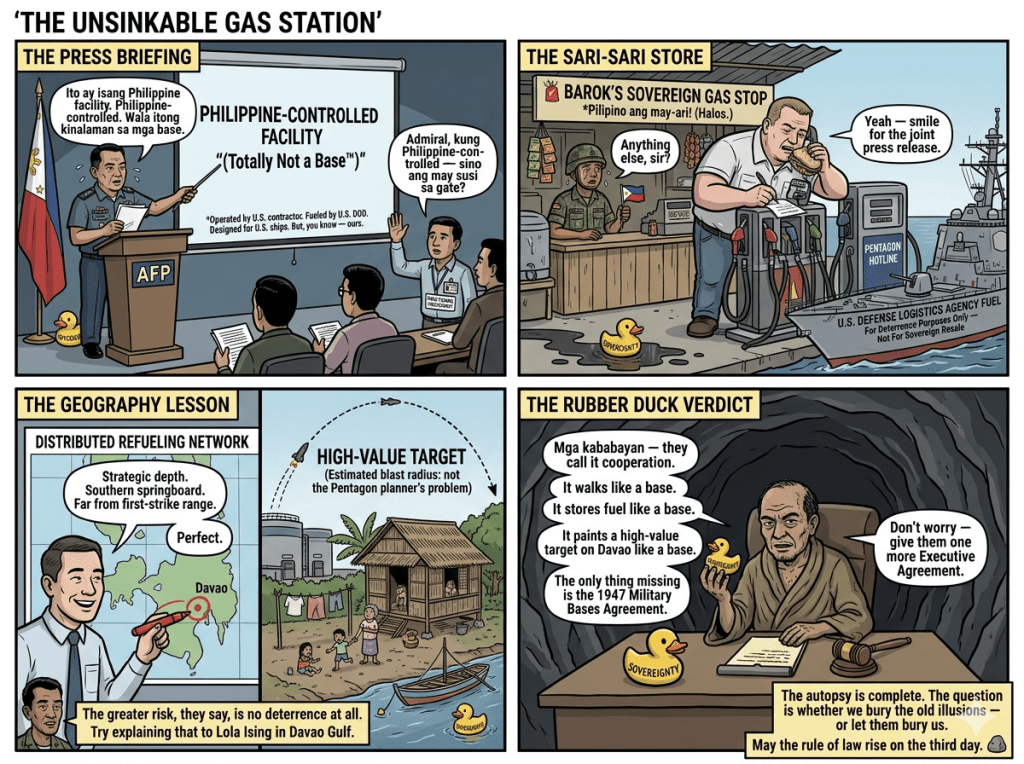 Picture this: It’s 2026, the South China Sea is simmering like a pot about to boil over, and the Armed Forces of the Philippines (AFP) is standing before us with the straightest of faces, telling us that a shiny new American fuel depot in Mindanao—41 million gallons of U.S.-owned kerosene, run by a U.S. contractor—isn’t a base.