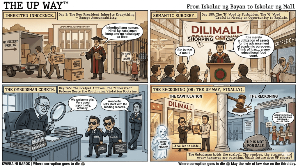 UP is not for sale. Its land is not a private profit center. Its officials are not corporate landlords in academic robes. The Ombudsman now holds the scalpel. Use it. The vendors, the students, and every taxpayer who believes a national university should serve the nation—not gentrify it—demand nothing less.